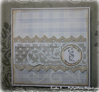 Baksiden er enkelt pyntet med svirle fra Silhouette, og samme blonder og ark som forsiden. Jeg har også med mitt egne digitale stempel.