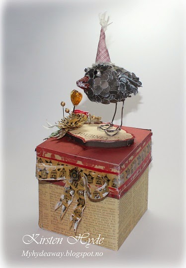 "Create good memories for yourself and those you love". The text stamp is a stamp from Kreativ Hobby, I masked part of the text.I also got a stamp with hearts, which is one of the stamps used to create the background. The metal clock and "handmade by" hand on the test tube is from KortHobby.