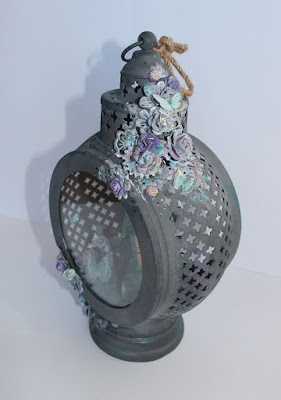 Today I am showing one of my altered items in my October blogpost for Kaisercraft. Fairy dust is a lovely collection filled with butterflies and fairies in soft green, blue and purple colours. I decided to alter a lamp, and create a small fairy theme inside the lamp. The lamp was bought at RUSTA.